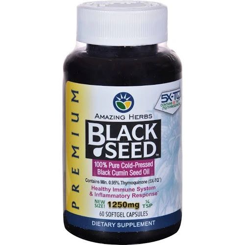 Amazing Herbs Premium 100% Pure Cold-Pressed Black Cumin Seed Oil is a rich source of EFA's and offers 0.95% naturally occurring Thymoquinone for healthy immune system and inflammatory response.